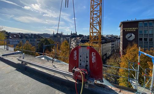 So können u. a. Treppenanlagen erweitert oder Lichtkuppeln installiert werden. Neue Türen oder Fensteröffnungen in Stahlbeton- und Mauerwerkswänden entstehen oder bestehende Öffnungen werden vergrößert.